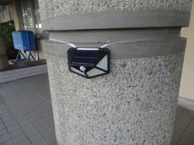 地域の方が、「学校の正面玄関が夜暗いので使ってほしい」とライトをくださいました。