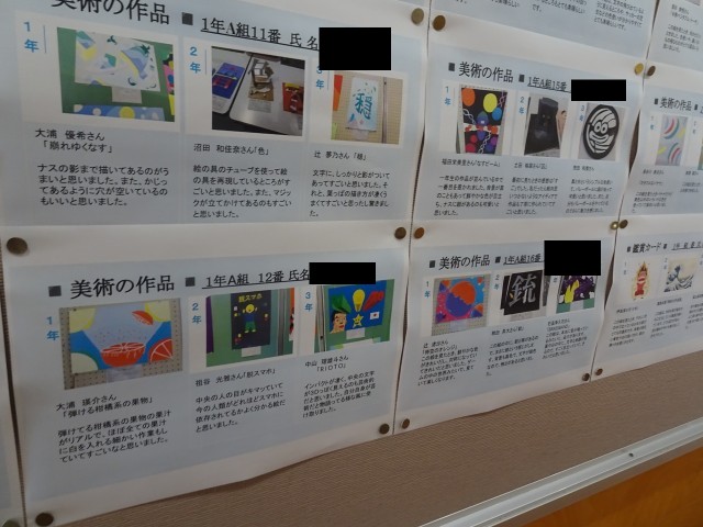 学習発表会の展示作品で、すてきなだと思った作品についてコメントを書きました。違った作品を選んでおり、それぞれの生徒の感性の多様性に気付かされます。