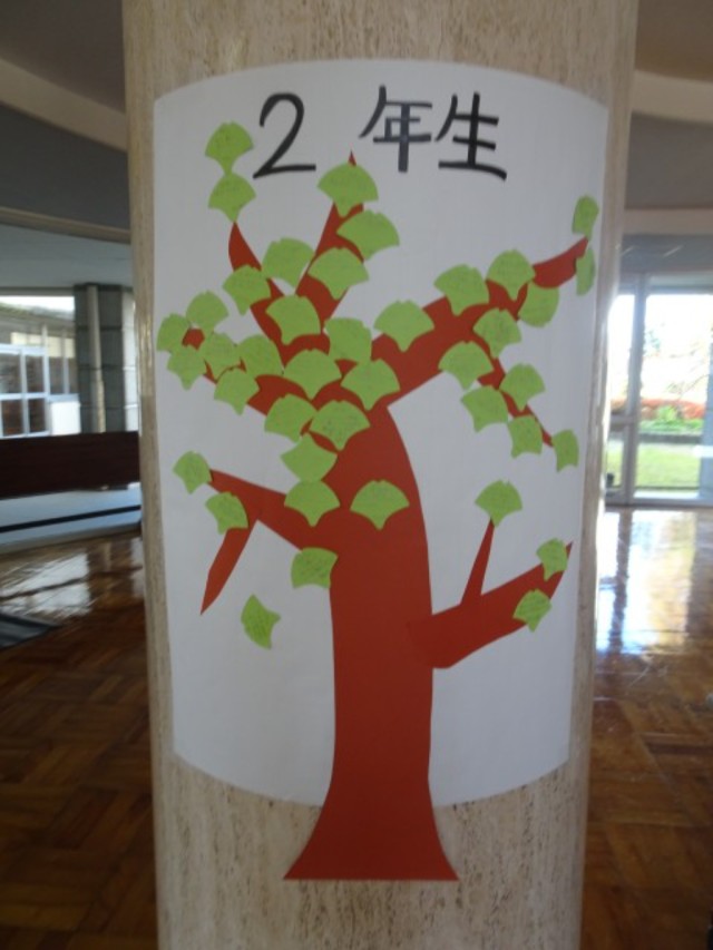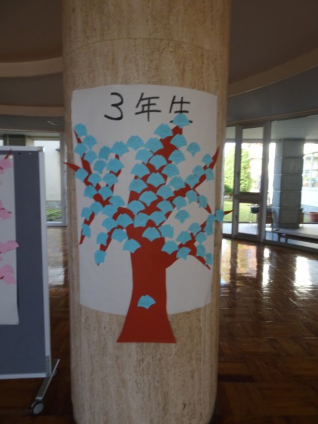 玄関前の掲示物にたくさんの友達のよいところが書かれています。