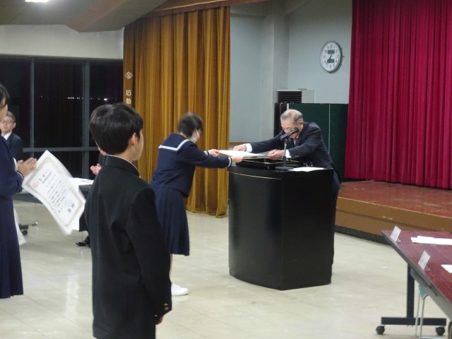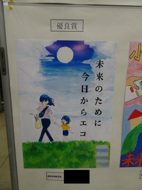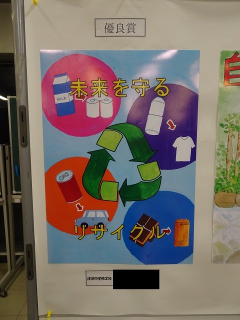 本校の生徒2名が、市の環境ポスターに出品し、優良賞をいただきました。表彰式が市役所で行われ、生徒1名が参加しました。おめでとうございます。2人とも工夫を凝らした作品を仕上げました。