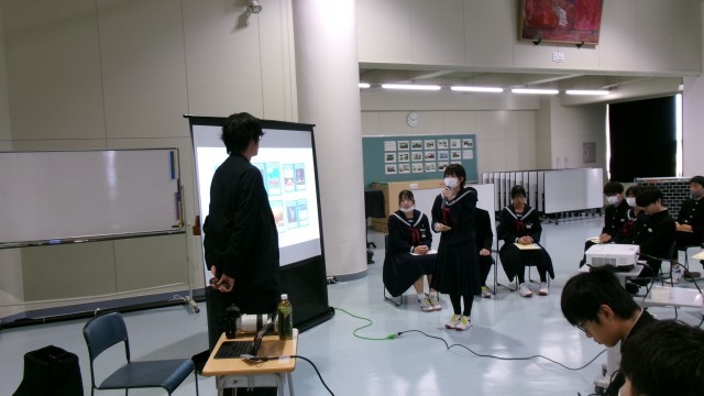 2限は、2年生のみでイナガキヤストさんとの座談会を行いました。
