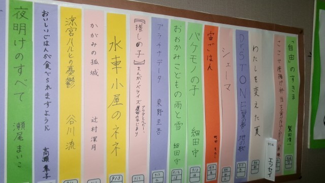 図書室主催で行っていた「推し本紹介」が、いよいよ完成し、全校生徒に発表されました。