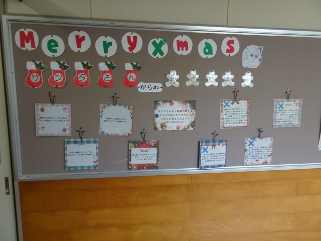 相談員の先生によるほっとルーム前、学校助手による正面玄関前、養護教諭による保健室前です。ぜひ、保護者会等でご来校されたときは、ご覧ください。