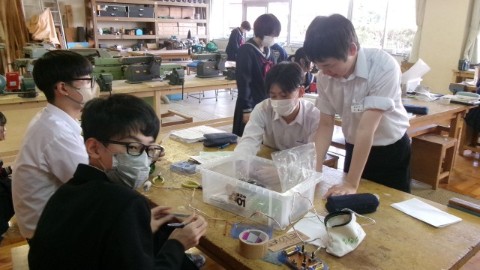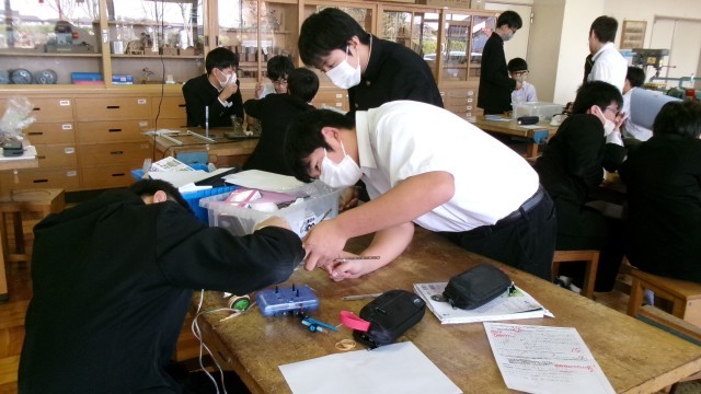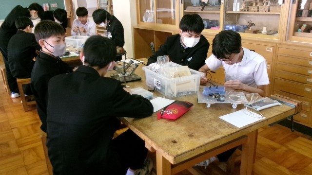 技術家庭科では、1月に行われる校内ロボットコンテストに向けて、3年生がロボット制作に取り組んでいます。