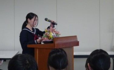 1年生代表は、先日のイオンとなみでの演奏会のことを話しました。本番に向けて、他校との合同練習で頑張ったこと。