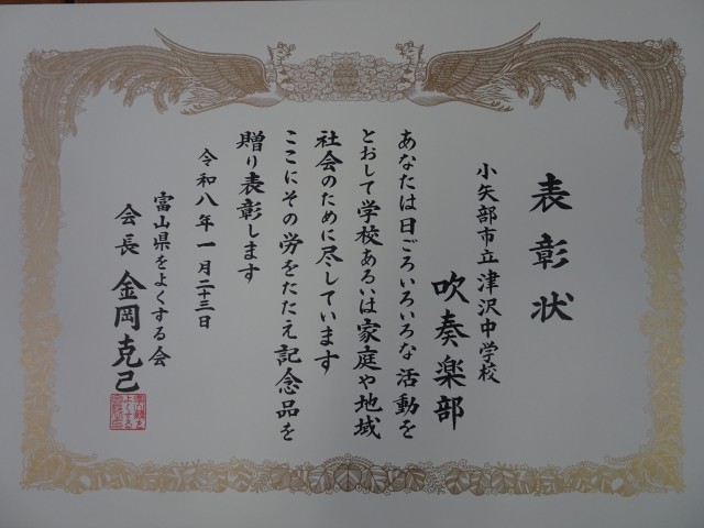 「公民館祭りなどの地域の行事で演奏したことで、こうして表彰を受けることができてよかったです。後輩には、このような伝統を受け継いでいってほしいと願っています」