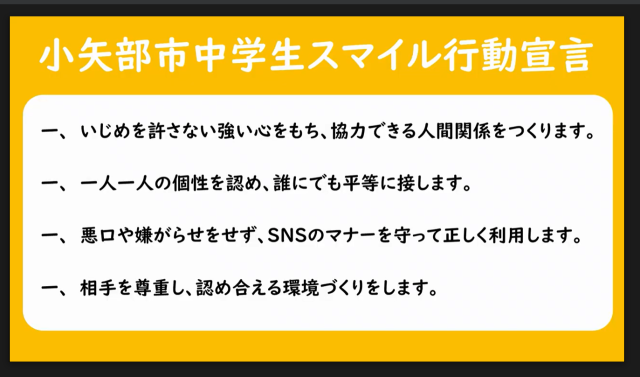 本日、市の4中学校の生徒全員がオンライン参加して、「第2回小矢部市中学生あったかプロジェクト」を行いました。