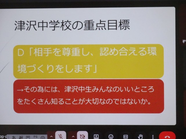 津沢中学校は、2学期重点的に取り組んだ「よいとこ見付け」を中心に発表しました。
