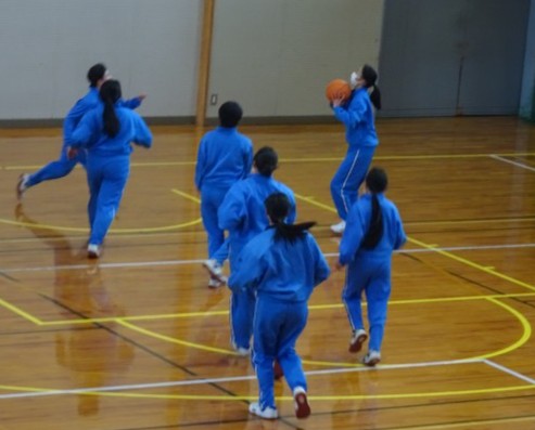 女子は、バスケットボールのクラブチームの生徒の「さすが!」と思わせる動きで、仲間へのシュートまで持ち込みます。