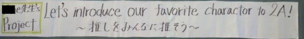「推しをみんなに推そう」と、英語で大好きなキャラクターを説明します。