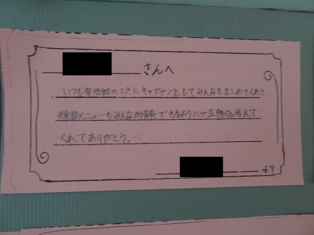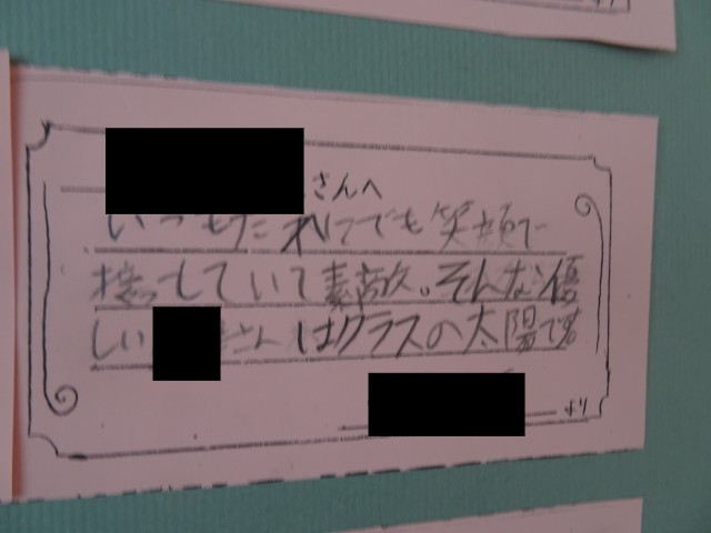友達の頑張りやよいところに気付き、それを表現して伝え合っています。