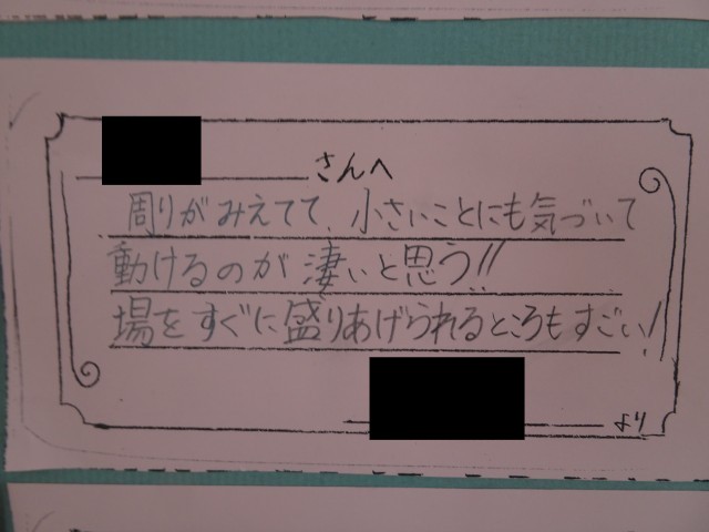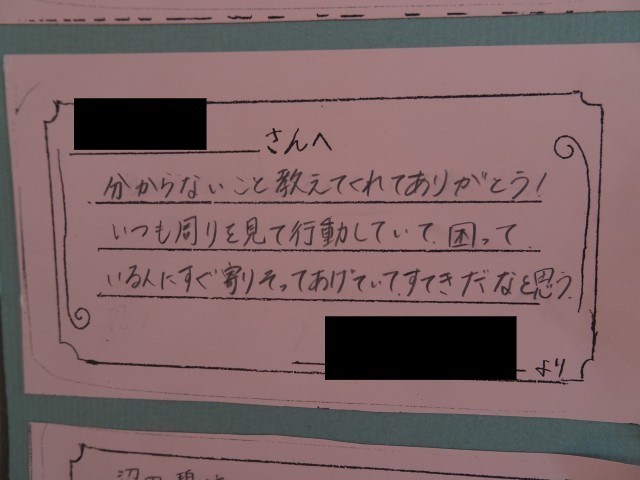 書き始めたころよりも、友達のよさを具体的に表現ができるようになりました。