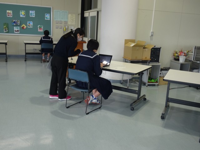 来年度4月に行われる、全国学力学習状況調査に向けて、タブレットの音声等の確認をしています。