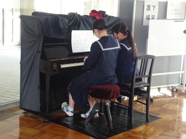 校内に響くピアノの音色。卒業式で披露する合唱曲の伴奏練習をしています。