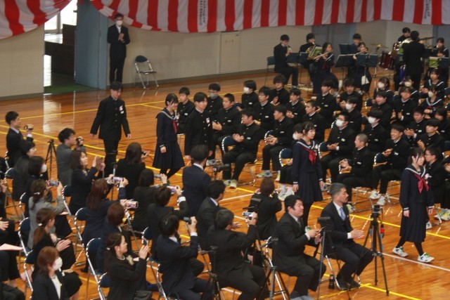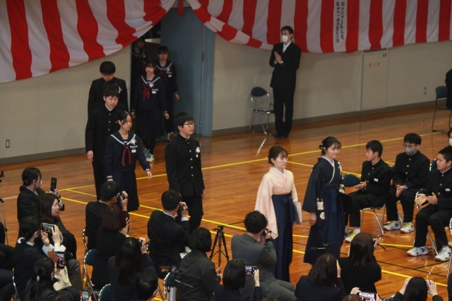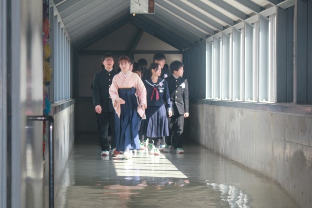 在校生は、卒業生に体を向けて大きな拍手を送りました。