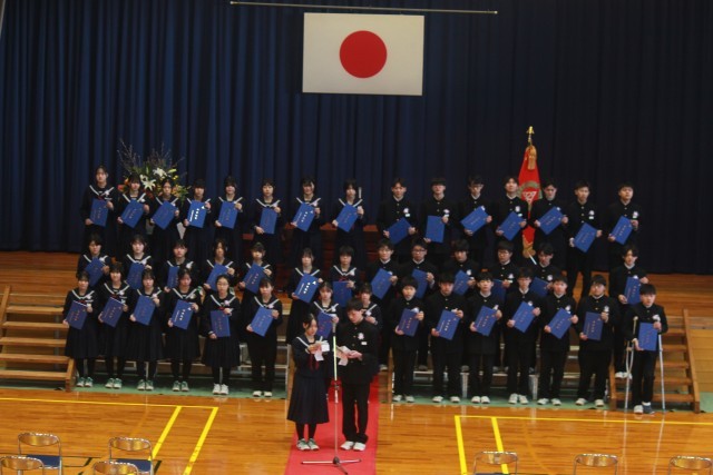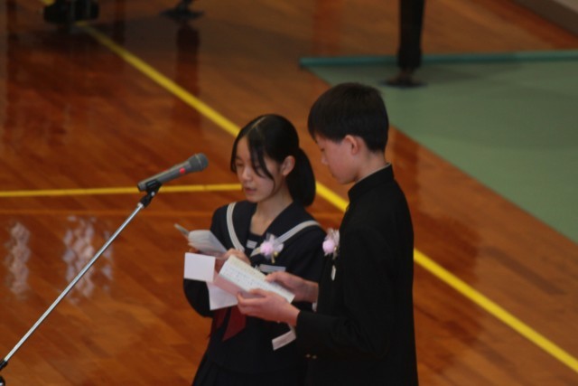 3年生代表二人が、自分たちの成長、そして家族、地域の人の支えへの感謝の気持ちを伝えました。