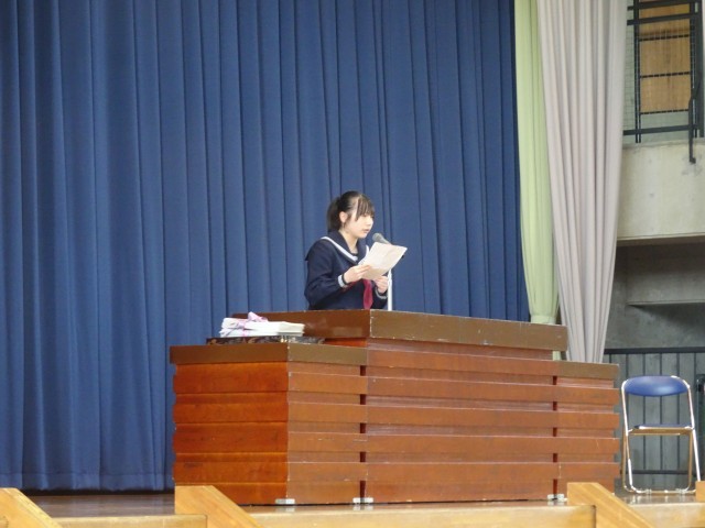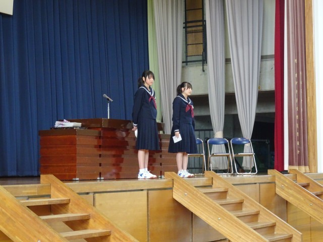 大きな声で堂々と伝える2人に、全校生徒から大きな拍手を送りました。