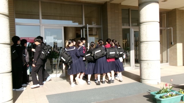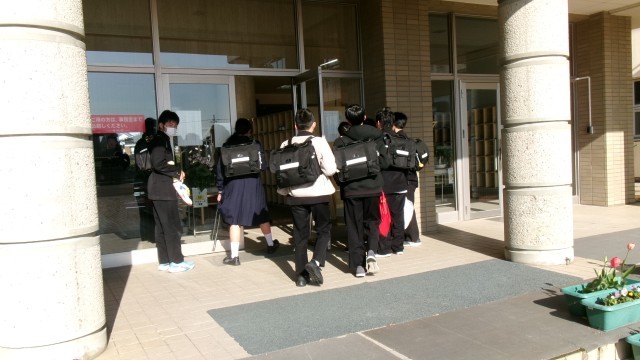 始業式の朝、クラス替えのある2年生はいつになく早く登校する生徒が多く、玄関前に貼った名簿をどきどきしながら見ている姿がありました。