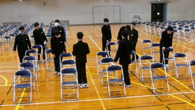 明日の入学式の準備を、みんなで協力しながら進めています。