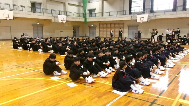 式の前に、校長から入学式に関する話をしました。「2・3年が丁寧に準備をしました。吹奏楽部、ピアノ伴奏者が式に花を添えました。1年生は、大きな声で呼名に答え、壇上の校長と目をつなぐことができました。宣誓の生徒が、紙を見ることなくしっかりと覚え、言葉を丁寧に伝えました。津沢中学校がよいスタートをきることができました」