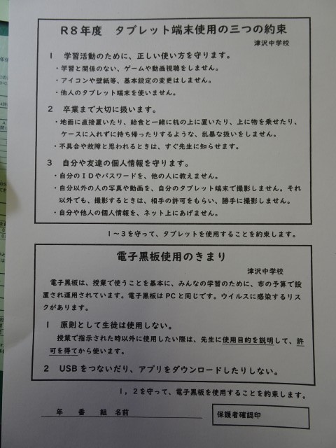 ICT機器をルール、マナーを守って使う力を身に付けてほしい、学習用に国費で購入しているから大切に扱ってほしいと伝えました。