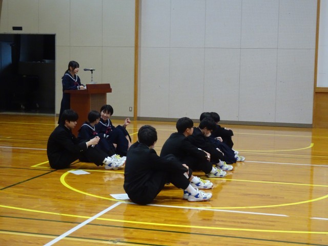執行部員と委員長が、1年生に生徒会、各委員会の活動を紹介する集会をしました。