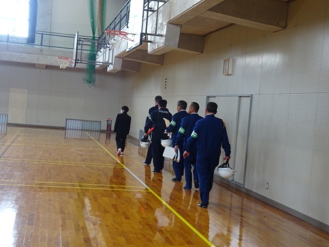 規律委員長が、校長室から体育館へ案内しました。