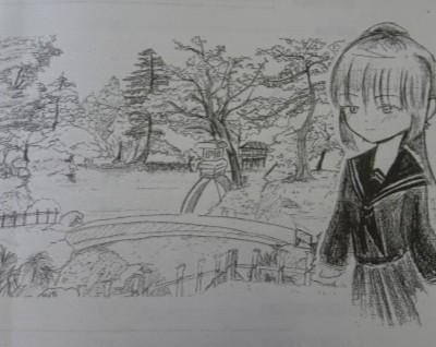 右は、生徒が描いたしおりの挿絵です。