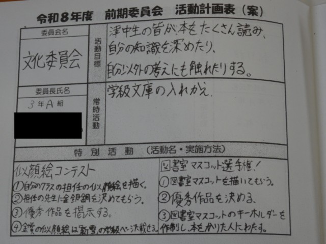 委員長が、活動計画案を伝えました。
