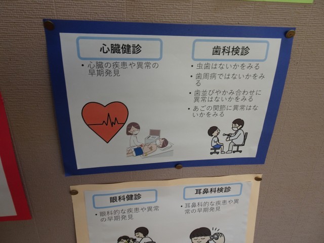 心臓検診、歯科検診、耳鼻科検診など、たくさんの検診が始まります。