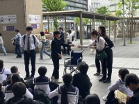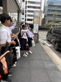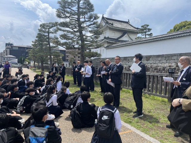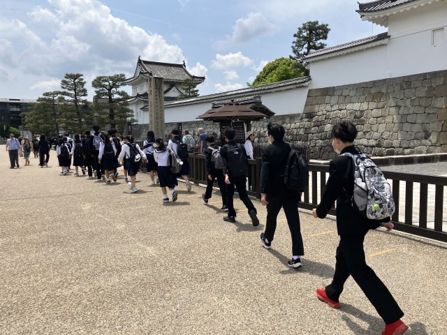 京都の二条城に着き、タクシーの運転手さんとの班別学習スタートしました。みんな元気で笑顔です。