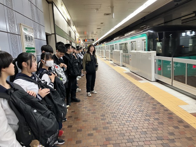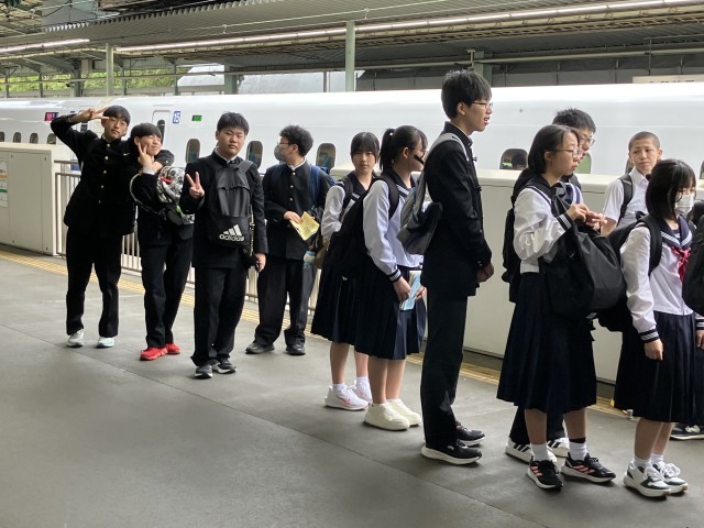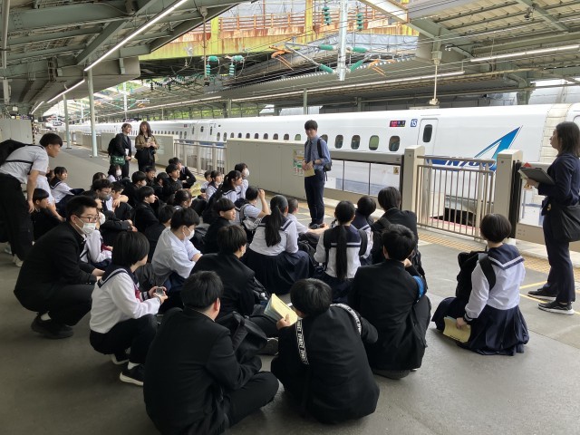 練習してきた新幹線の乗車隊形になり、新幹線を待ちます。広島へ向かいます。
