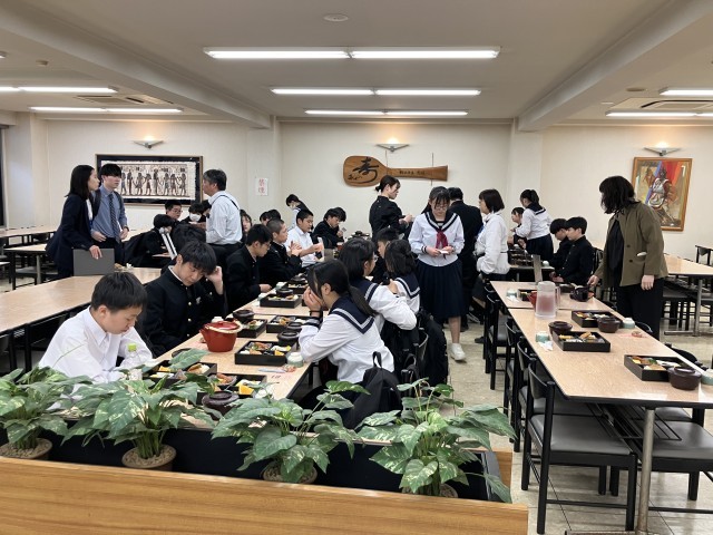 ガイドさんとお別れし、宮島の食堂で昼食を取ります。お土産にもみじまんじゅうを1人ひとつずついただきました。
