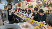 今日は高岡市の勝興寺を訪れたあと、富山大学高岡キャンパスを見学し、昼食を学食で食べます。