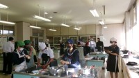 吹奏楽部は、先日の砺波地区吹奏楽祭の映像を見て振り返りをしています。7月に行われる富山県中学校吹奏楽コンクールに向けて、練習に力が入ります。(上の写真2枚)