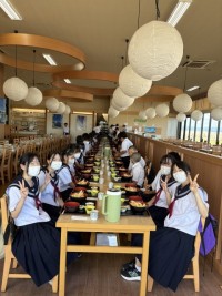 お知らせ 皆元気に朝食をとりました。今朝は和食スタイルです。生徒代表がホテルの方にお礼のあ...