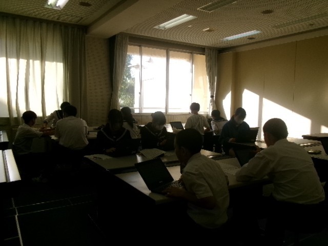 本日はお昼に委員会活動がありました。美化ボランティア委員会では、次の活動の掲示物を作成していました。委員会活動でもタブレットを活用しています。