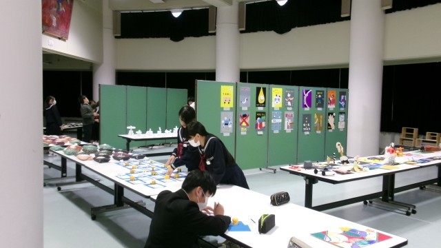 展示係が中心になって、展示作業が進んでいます。両手でしっかりと持ち、また真っすぐになるように少し離れて見たりと、丁寧に進められました。作品には、その友達の思いや努力が込められています。その作品を大切に...