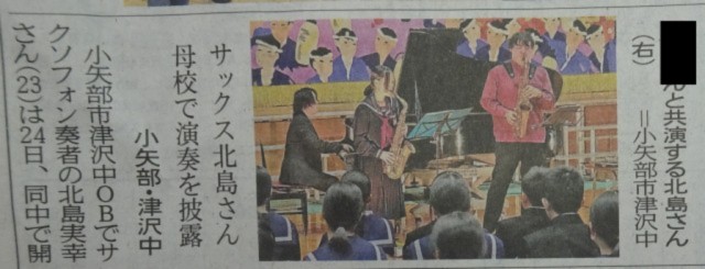 今年度は、PTAステージを企画していただきました。北島実幸さんのサクソフォンを聴きました。「雪の華」「瞳を閉じて」など私たちの知っている曲を披露。そして、最後に本校の吹奏楽部3年生とのコラボレーション...
