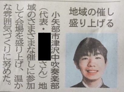表彰式に出席した3年部長に言葉を聞きました。「公民館祭りなどの地域の行事で演奏したことで、こうして表彰を受けることができてよかったです。後輩には、このような伝統を受け継いでいってほしいと願っています」...