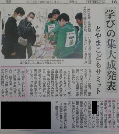 とやまこどもサミットが富山大学で開かれました。先月兵庫県姫路市で開かれた「科学の甲子園ジュニア」の富山県代表チームが、その体験をポスターセッションで伝えました。本校の2年生1名も参加しています。
