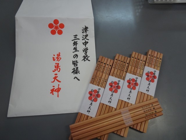技術科を担当している教員から、「3年生ひとりひとりに渡してほしい」と合格祈願の鉛筆をいただきました。3年生は受験真っただ中、学習に向き合っています。春は少しずつ近づいています。