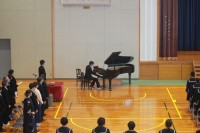 吹奏楽部の演奏の中、退場しました。吹奏楽部の生演奏は、卒業式に華を添えます。その後3学年主任から保護者に、今までの教育活動へのご協力、ご理解のお礼を伝えました。
