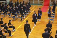 温かい在校生の拍手の中、卒業生は笑顔で通っていきます。たくさんの方から祝電メッセージをいただき、ありがとうございました。教頭が式の中で、全ての方のお名前・学校を紹介しました。卒業式に参加できなかった方...