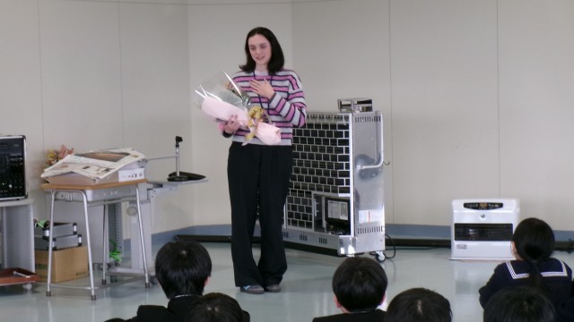 今日はALTのイヴィー先生が最終日でした。生徒代表のお別れの言葉のあと花束を受け取り、最後に話し始めたイヴィー先生は目を赤くしていました。「最初に来たときは不安だったけど、津沢中学校の生徒はみんな親切...