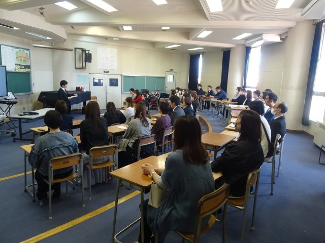 放課後、生徒玄関前で1年生が足を止めています。その先には…、吹奏楽部です。今日もホールでミニコンサートを開催。迫力ある演奏に、聞き入る1年生。演奏後に大きな拍手が起きました。