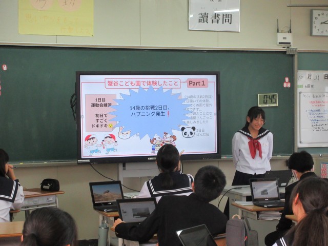 10月21日(火)に2年生で「14歳の挑戦」の活動発表会を行いました。