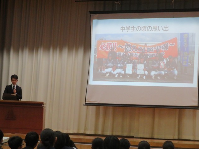 現在の仕事に就いたきっかけや進路選択、中学生のうちに身に付けてほしいこと等お話いただき、生徒もとても興味をもって聞いていました。