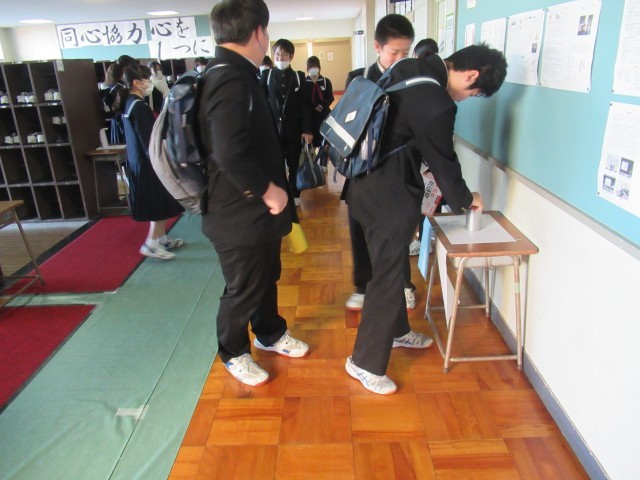 期間中は、生徒玄関前に募金箱を設置し、朝の時間(8:35~8:45)に受付を行っています。集まったお金は、生徒会執行部が青森県教育委員会や公的支援団体を通じて募金します。