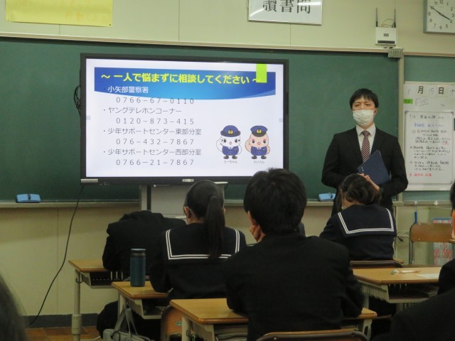 富山県警察本部少年サポートセンターと小矢部警察署から講師の方に来ていただき、2年生が薬物乱用防止教室を受けました。